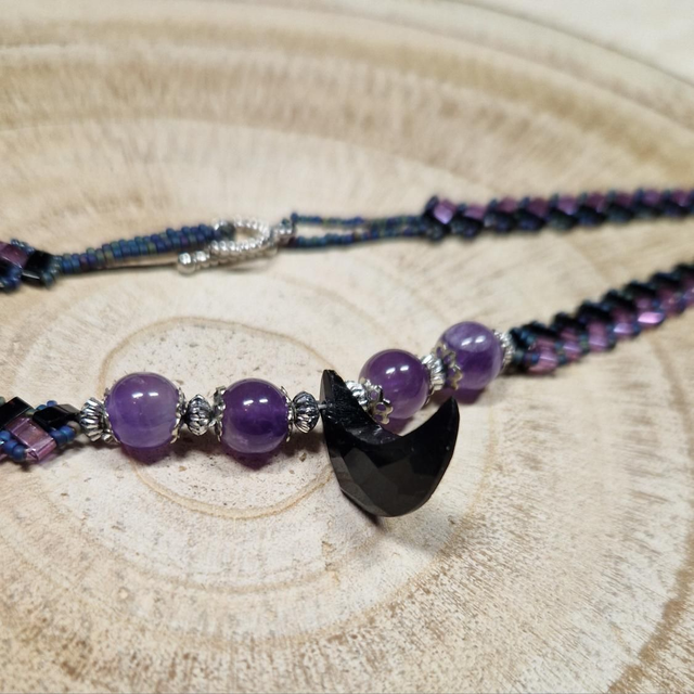Pendentif : lune taillée dans une pierre d'onyx