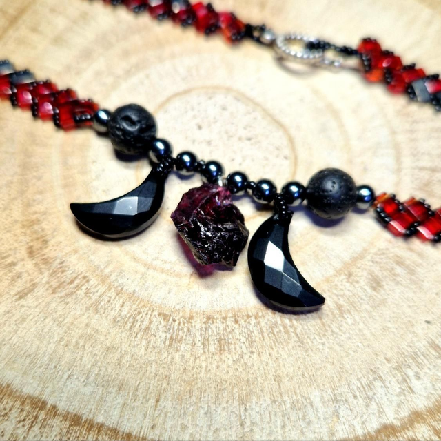 Autres pierres : lune en Onyx et perles volcanique